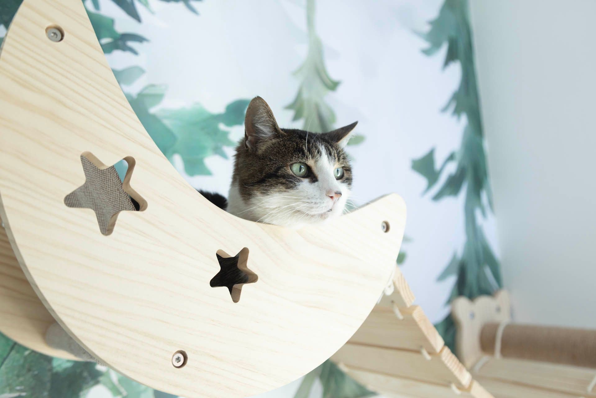 In our largest suites, your furry family member will get a taste of the great outdoors on this camping trip adventure. Bird watching and stargazing are included with this suite's exterior windows. 300+ cubic feet of coziness for your cat to enjoy!